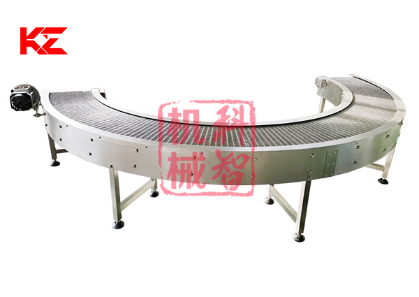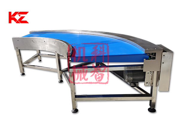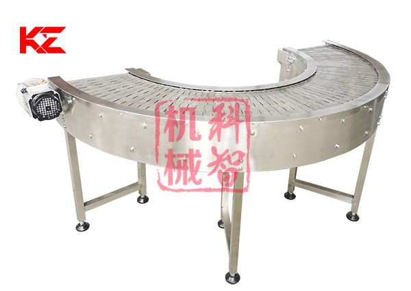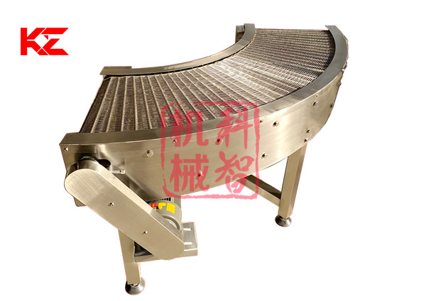 轉(zhuǎn)彎輸送機采用的形式有:網(wǎng)帶轉(zhuǎn)彎輸送機、鏈板式轉(zhuǎn)彎輸送機、皮帶式轉(zhuǎn)彎輸送機、鏈桿式轉(zhuǎn)彎輸送機、塑料模塊式轉(zhuǎn)彎輸送機等。轉(zhuǎn)彎角度有45度、90度、180度等等。轉(zhuǎn)彎食品輸送機的寬度和轉(zhuǎn)彎半徑均可根據(jù)需求定做。
